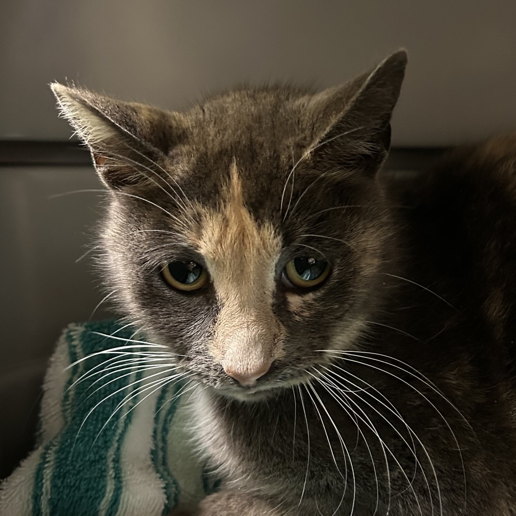 Everybody, meet Callie! In Greek, Callie means “beautiful” or “lovely” - and her name definitely fits. Callie is a 6.5-year old, dilute Tortie. Right now, the world seems really big and scary to Callie, but she is slowly realizing how brave she is. Callie came into our care as lost pet, so we do not really know anything about her past. Despite Callie’s shyness, she comes out for a good Churu and some slow ear scratches. If she is feeling brave, she will rub up on your arms and legs asking for pets. With some kidness and patience, Callie can definitely blossom into the confident, loving cat she’s working to be. Callie is currently in a foster home, but is still available for adoption!
