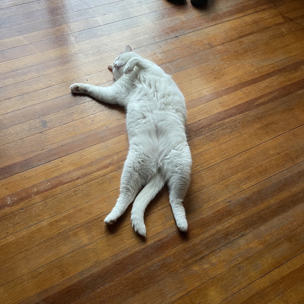 Everybody, meet Stewart! Stewart is a 5-year old, handsome, Domestic Shorthair. Stuart is full of snugs and luxuriously silly nap positions. He loves to lie directly on his back - all paws up - and demonstrate the heights of relaxation - in case you need any inspiration. He loves springs for toys and will play fetch with them. He has always been slightly chonky - even as a little one - it's his natural form he says. Chasing his tail is a favorite activity, as well as squeezing himself into small boxes, as well as looking very regal and dignified. He is a magnificent fly catcher and looks forward to showing you how he can help with any random bug in your house. He enjoys a shoulder ride and a good stretch of his front legs when being lifted. What he loves most is a lap and time to love and connect. If you are interested in Stewart, please reach out to his owner, Darcy, at [email protected] or 434-258-4820 We, the Lynchburg Humane Society, are assisting the owners in marketing this pet to help find a new home. The pet is not in the custody of the Lynchburg Humane Society. The Lynchburg Humane Society, Inc. makes no claims or representations regarding the temperament, disposition or health of any animal adopted or rehomed. I release The Lynchburg Humane Society, Inc. and its agents from any liability for injuries to persons or damages to property caused by said animal. Please contact the owner if you are interested in meeting or adopting this pet! You can find their information by viewing the pet’s bio!