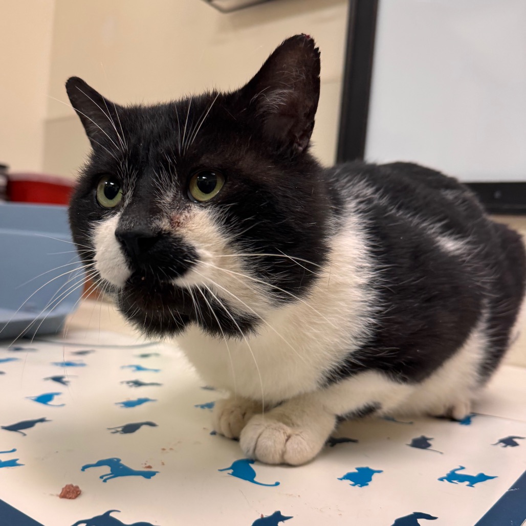 Meet Blackbeard, the chattiest boy with the chubbiest cheeks!! Blackbeard, despite what he was named for, doesn’t have a barbaric bone in his body. We wouldn’t even describe him as resourceful or savvy, because, despite his tough appearance, even during his time outdoors he always had someone taking care of and feeding him, clearly. Blackbeard is approximately 4 years old and he’s looking for his next, low-key, adventure! He has FIV which slightly compromises his immune system, so he should stay indoors, it is not contagious except through blood, so he can live with other cats! Stop by to meet this treasure of a cat 👑💚
