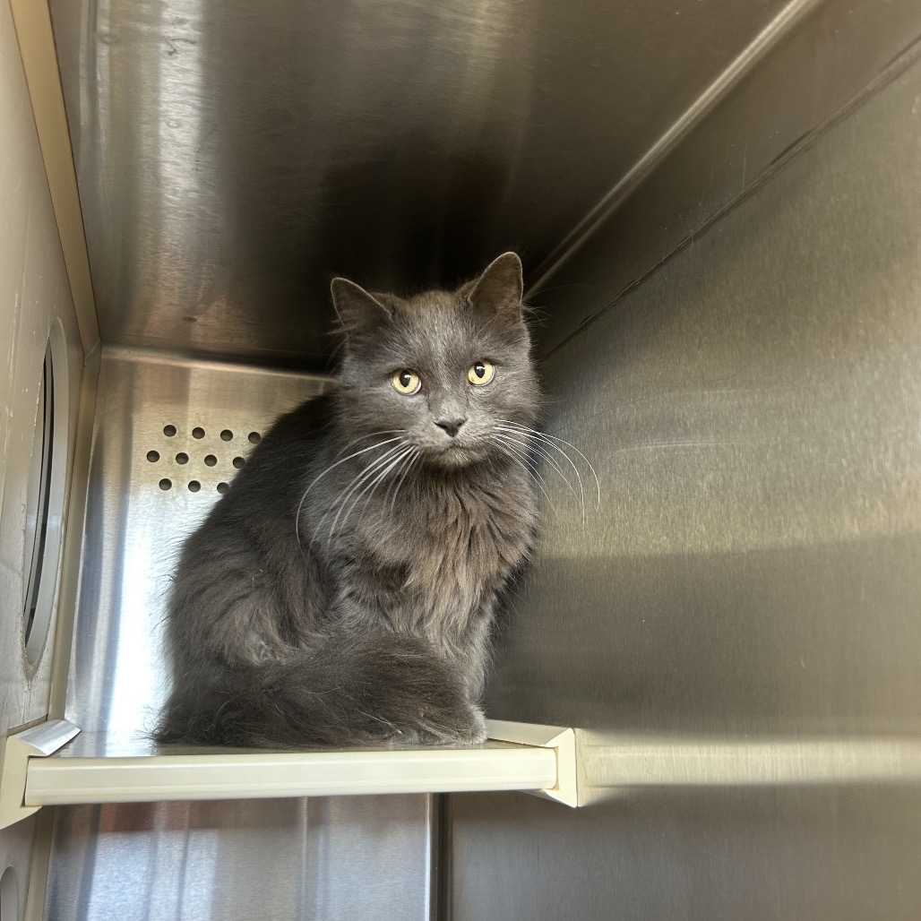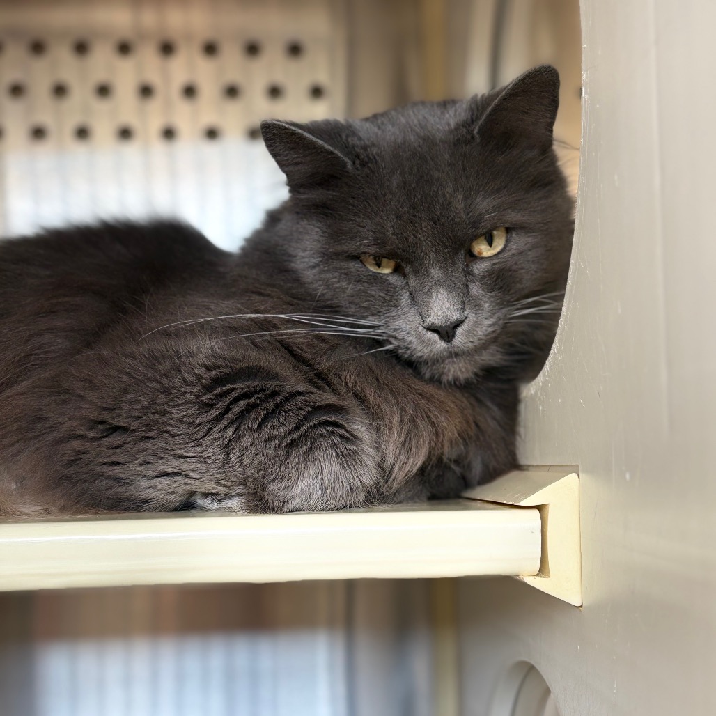 Hure is the name and cuteness is the game! I'm a young, domestic longhair cat with a beautiful grey coat! Hure-y on over to the center today and make me your pet!