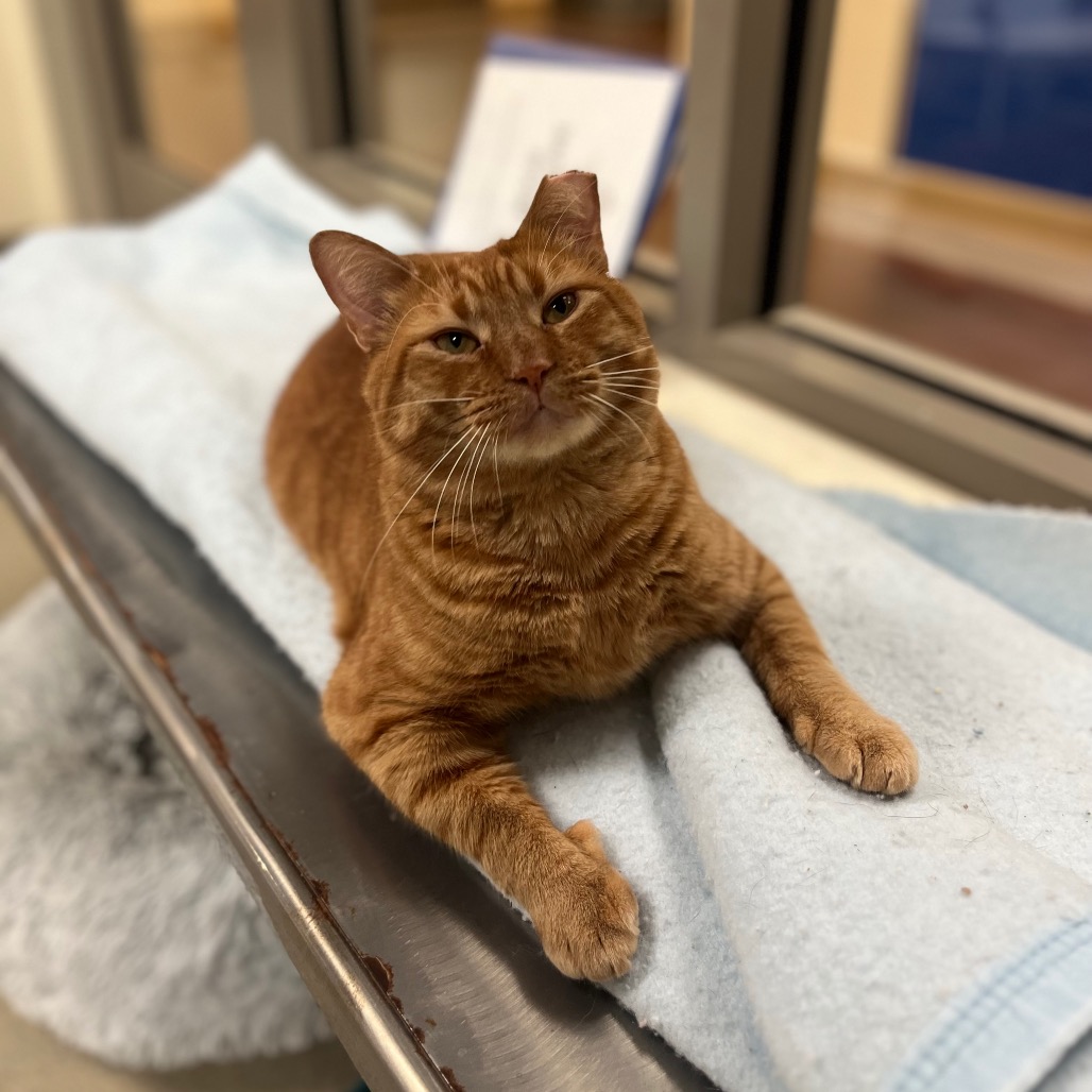 This gorgeous orange guy, is Oliver 🧡! This summer Oliver was living outside. He was a tom cat and a kind community member in the neighborhood he was living in was caring for him, and working to gain his trust. When they noticed an injury on his paw and nose they contacted Stray Cat TNR for a trap. The very next day they took him to our clinic to get his basic needs met! He was afraid, but our staff was able to check out his paw and found there was a deep abscess, likely the result of a bite wound. Because he had been so fearful and seemed to prefer outdoor living, our friends at Stray Cat only planned to keep him in a quiet place indoors during the length of his recovery, and release him as soon as he was ready! To everyone’s surprise, he slowly became accustomed to being indoors, and even started trusting people! Once they realized he would be a great adoption candidate, they reached out to us to have him transferred to our care. Here he is now, with a healed paw and looking healthy as ever! He’s still shy when being approached quickly, but is so sweet with the right touch. If orange kitties speak to you, swing by to meet this one 🧡