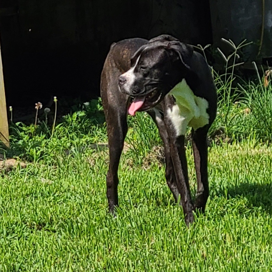 Everybody, meet Big Boy! Big Boy is a Cane Corso/Dogo Argentino Mix. This playful pup has the strength of a small horse- He quickly bounds from his indoor crate to run and play outside! He plays well with other dogs and even allows the cats to nibble from his food bowl if they get there first. His gentle, warm eyes reveal his tender, loving nature. He'll follow you anywhere for a milk bone and makes them disappear in a flash. If you are interested in Big Boy, please contact Catherine at (434) 391-4333, or [email protected]. Lynchburg Humane Society is assisting the owners in marketing this pet to help find a new home. The pet is not in the custody of the Lynchburg Humane Society. Lynchburg Humane Society makes no claims or representations regarding the temperament, disposition or health of any animal rehomed by it's owner. All questions and inquires regarding this pet can be directed to the contact information in this pet's bio.