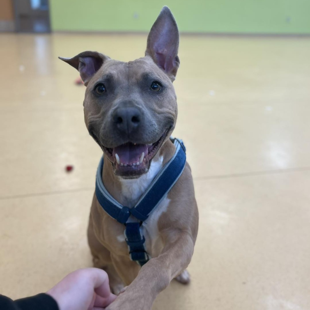 An argument could be made that Kimmie is close to being the perfect dog. She is a young adult, 4 years old, the age widely agreed to be when pitties finally grow out of puppyhood. Kimmie is house- and harness-trained, good on walks, very gentle, but still knows how to have a good time when the moment’s right. Kimmie is a toy enthusiast so she knows how to keep herself occupied when the family is busy but she also loves a good game of tug-o-war. Kimmie is great with kids, and maybe just a little bit protective of her home with men more than anything (perhaps two mommies is what she needs). Kimmie really is awesome and we absolutely adore her, but her biggest struggle, and what has kept her here for so long, is that she does not care for other dogs, but what’s wrong with that? Kimmie still deserves a loving home and anyone without pets would be missing out if they didn’t get to know Kimmie! Not to mention, on top of her loving, playful personality, she’s also suuuper pretty, like come on! She’s got the perfect sleek short coat, and the cutest ears we love to see on a dog! If you’d like to meet the wonderful Kimmie, stop by today or email [email protected]! Or if you are interested in fostering her you can email [email protected]!