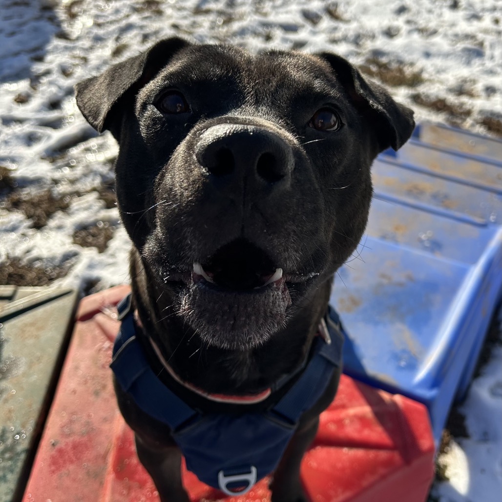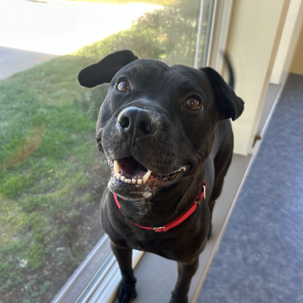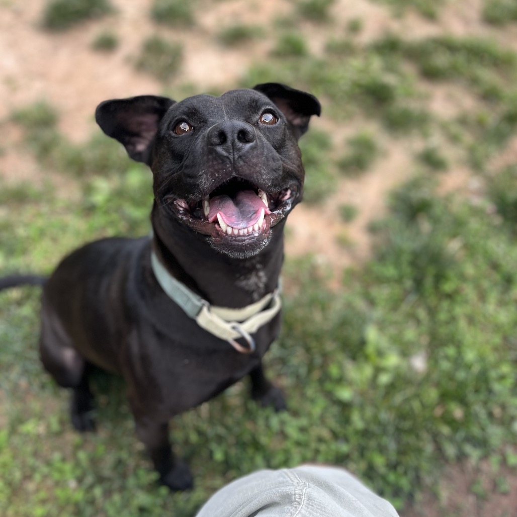 Hi, I'm Louie! I'm a big goofball who loves to play. I'm always ready for a game of fetch or a walk around the block. I'm also really friendly. I love meeting new people and making friends. I'm pretty sweet too, if I do say so myself. I love to give kisses and cuddle up next to you. My friends think I should be a comedian - I'm really good at making people laugh with my goofy antics. Oh, and I don't mean to brag but if catching treats was an Olympic sport, I'd win gold for sure.