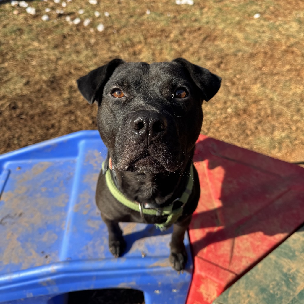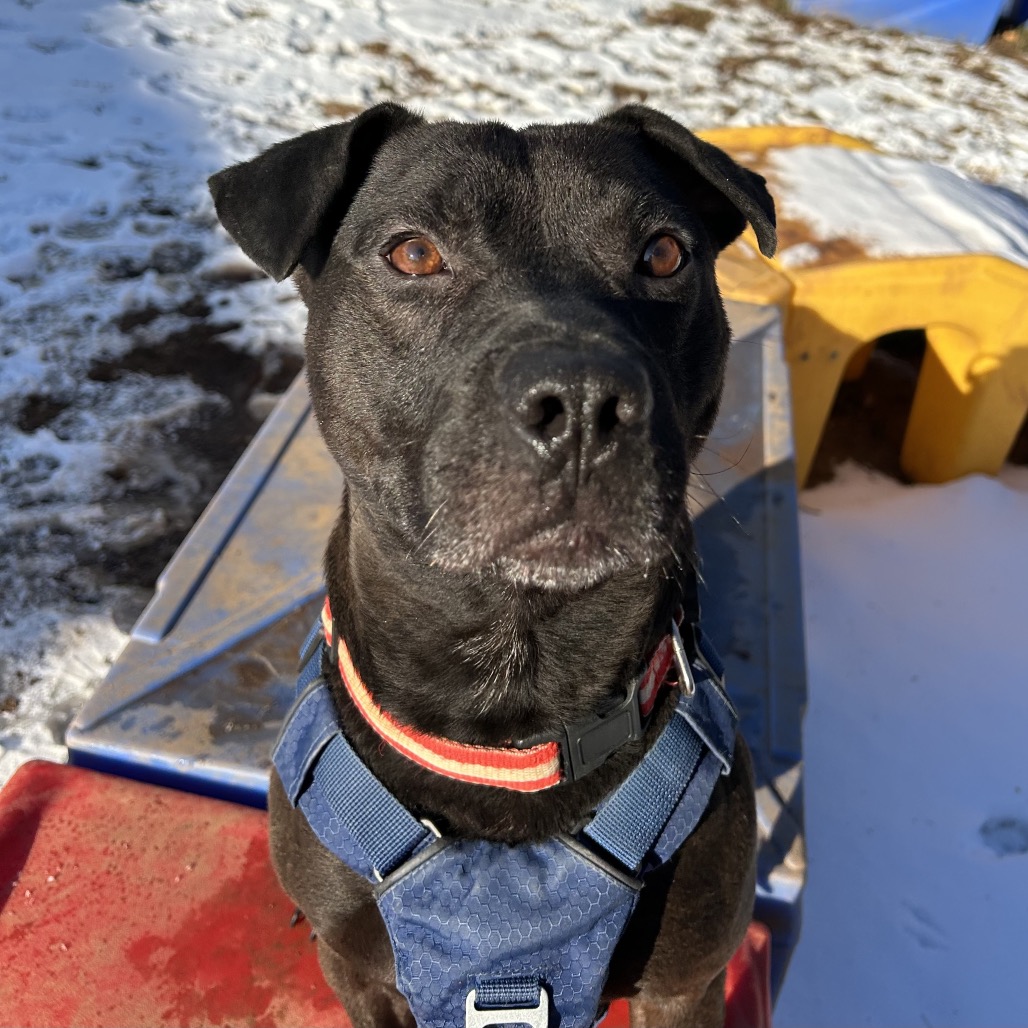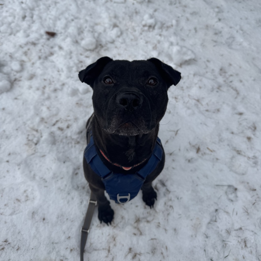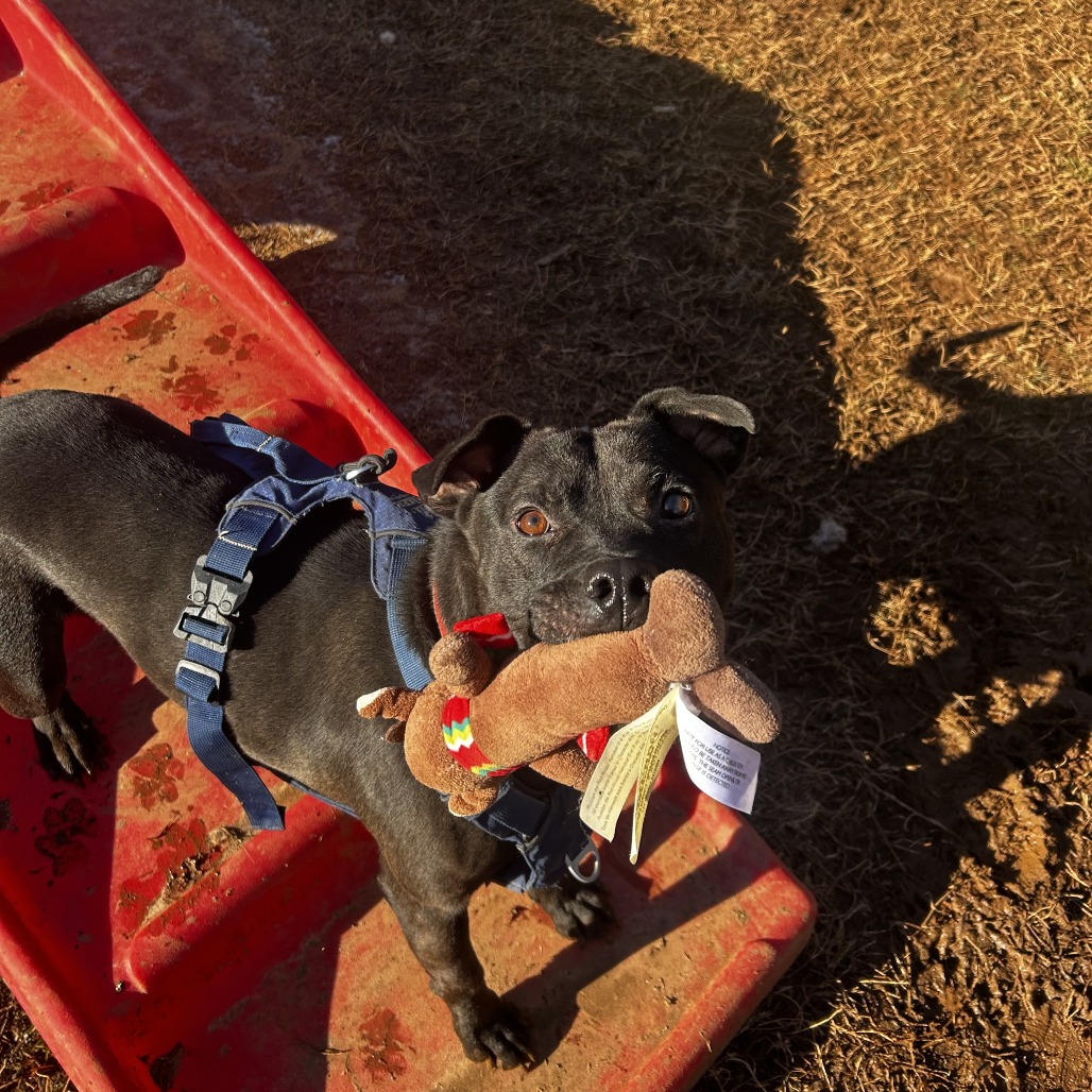 Hi, I'm Louie! I'm a big goofball who loves to play. I'm always ready for a game of fetch or a walk around the block. I'm also really friendly. I love meeting new people and making friends. I'm pretty sweet too, if I do say so myself. I love to give kisses and cuddle up next to you. My friends think I should be a comedian - I'm really good at making people laugh with my goofy antics. Oh, and I don't mean to brag but if catching treats was an Olympic sport, I'd win gold for sure.