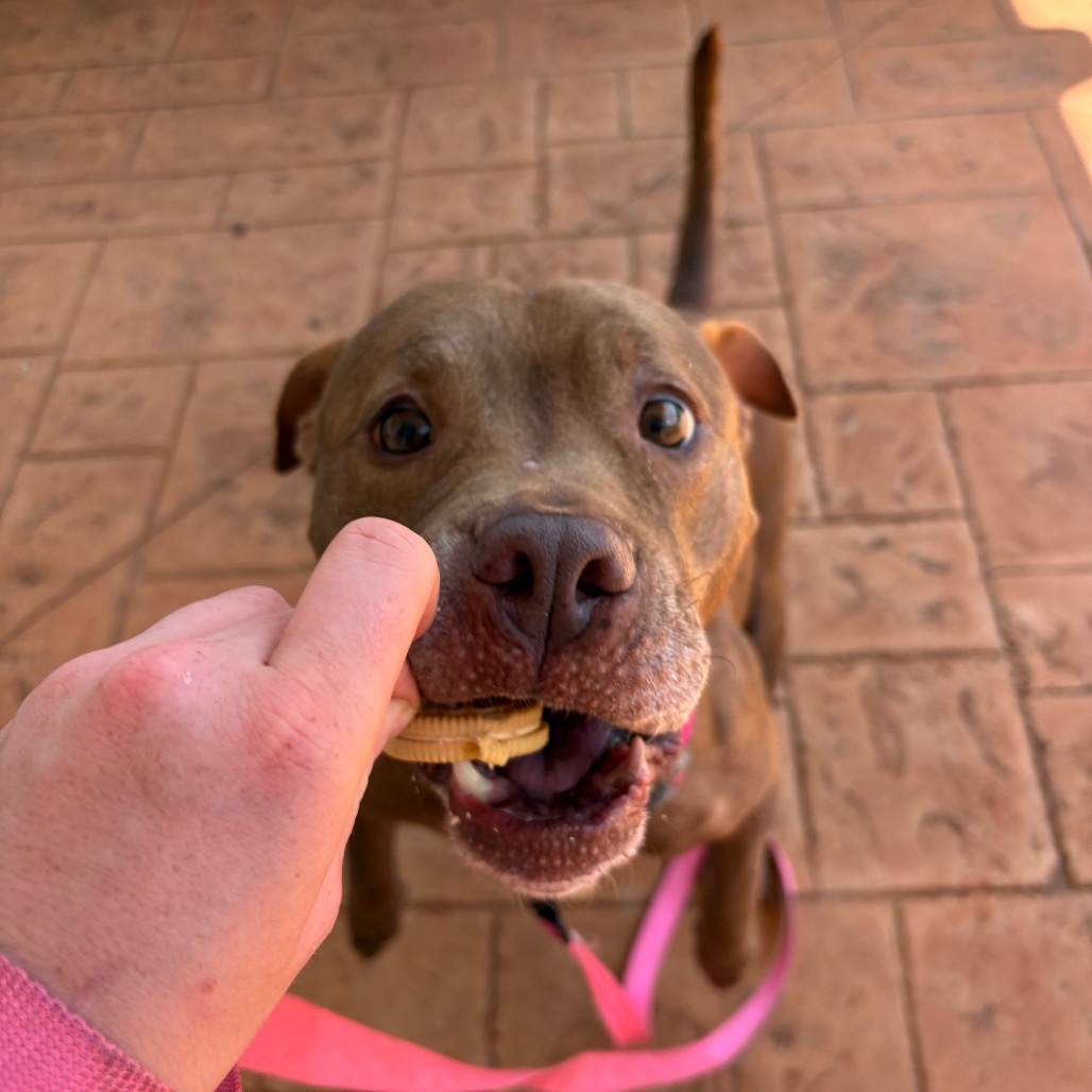 Meet Roselyn, a lovely 9-year-and-7-month-old sweetheart who’s ready to win your heart! 🌹 Roselyn is the perfect mix of gentle, affectionate, and well-mannered. She walks beautifully on leash, making every stroll a true joy, and she’s a smart girl who already knows her basic commands, such as, sit, shake, and down. She absolutely loves her time outside, whether it’s a nice walk in the neighborhood or simply enjoying the fresh air by your side. But Roselyn’s favorite place of all is right next to her person, soaking up all the love and giving it right back tenfold. She’s the kind of companion who will make every day brighter just by being with you. If you’re looking for a loyal, sweet, and loving best friend, Roselyn is waiting to meet you at the Lynchburg Humane Society between the hours of 12pm-7pm on weekdays and 11am-5pm throughout the weekend!