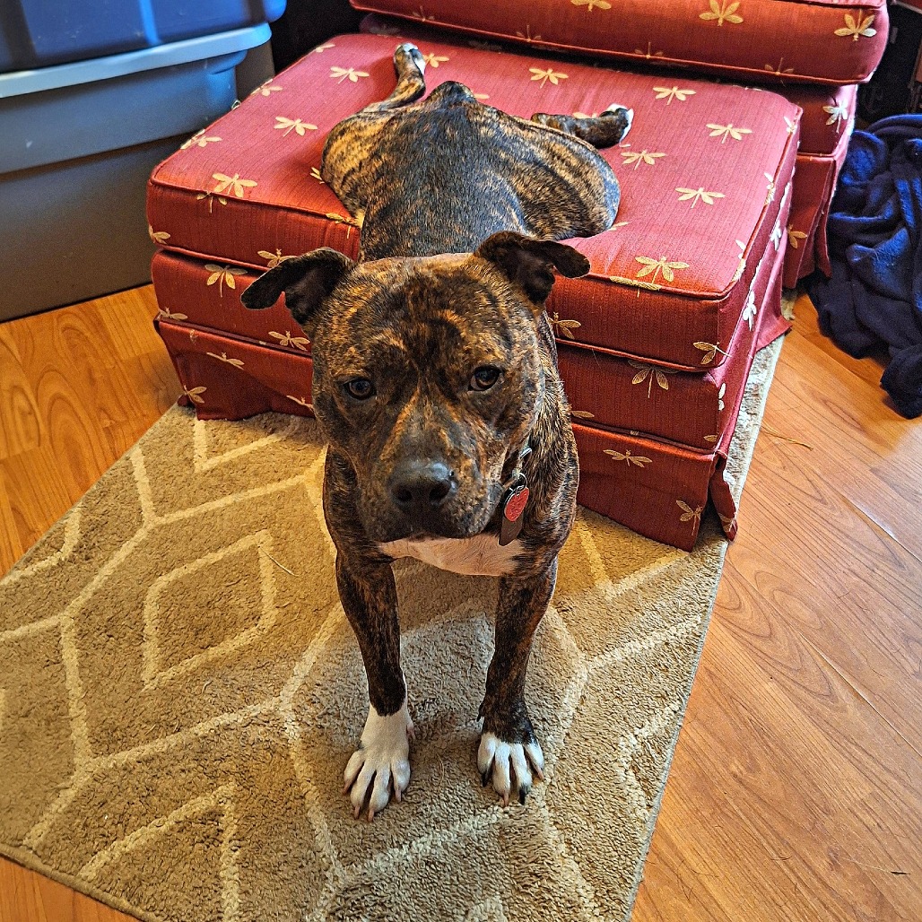 Everybody, meet Tyrion! Tyrion is a 2.5-year old, Pitty. Tyrion is such a cuddle bug. He loves spending his day hanging out in the home office. He is crate trained. Tyrion loves taking walks and hiking. Likes any and all toys but especially chew bones and playing fetch with sticks. He is just as happy curled up on the couch as he is out on a walk. He does the cutest little hopping thing when running after toys, almost like a deer. Tyrion does well with other dogs, cats, and children! If you are interested in Tyrion, please reach out to his owner, Lori, at (540) 494-1015 or [email protected]. Lynchburg Humane Society is assisting the owners in marketing this pet to help find a new home. The pet is not in the custody of the Lynchburg Humane Society. Lynchburg Humane Society makes no claims or representations regarding the temperament, disposition or health of any animal rehomed by it's owner. All questions and inquires regarding this pet can be directed to the contact information in this pet's bio.