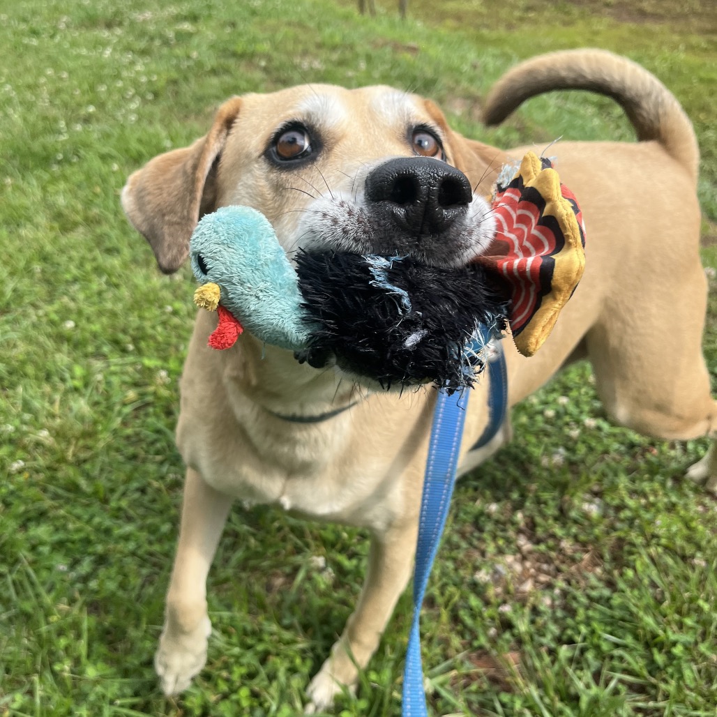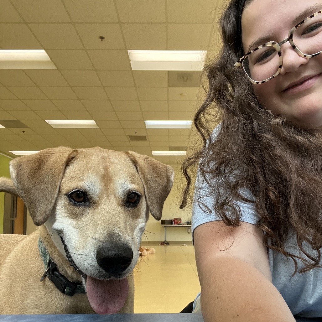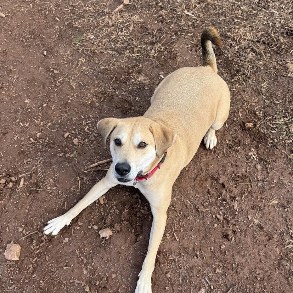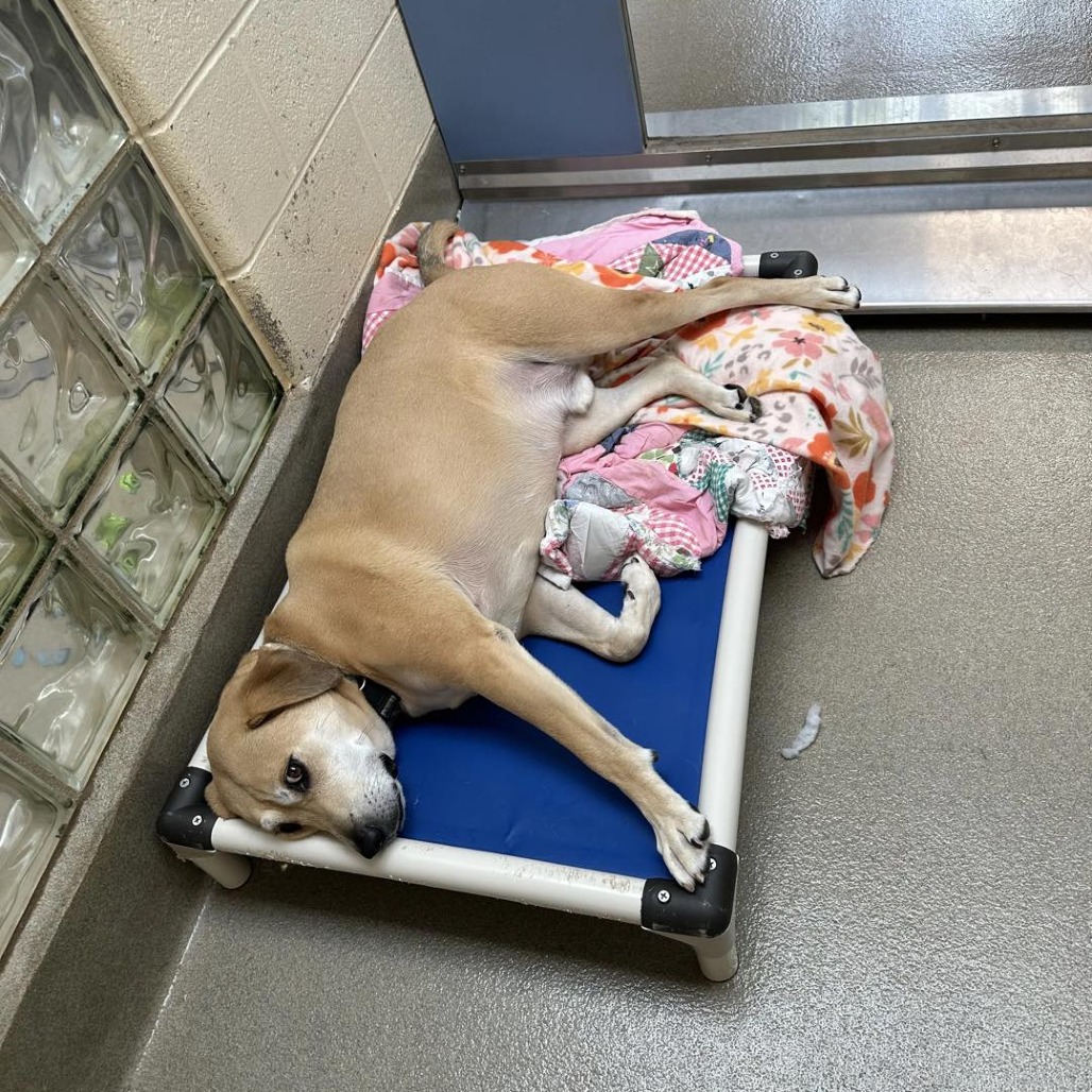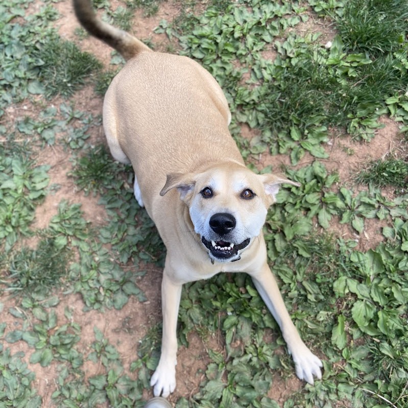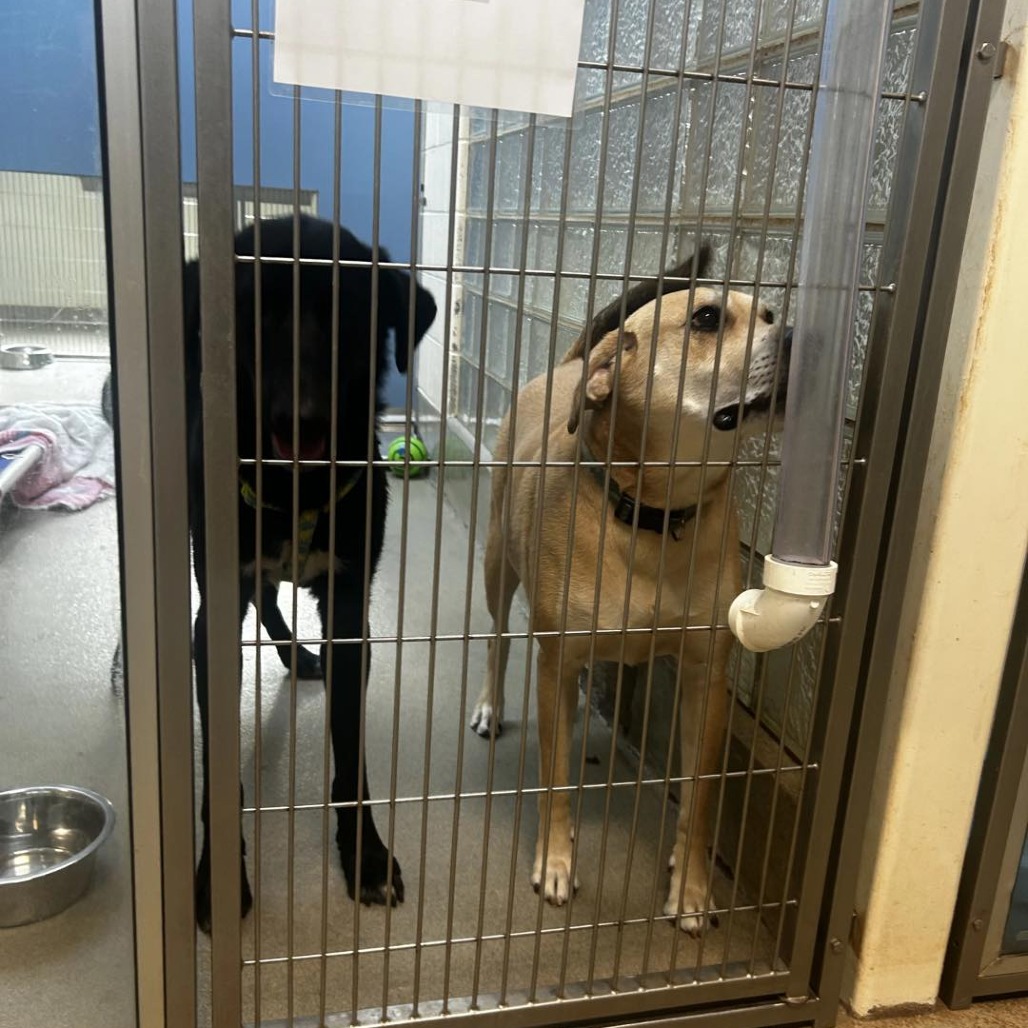 Legolas is the kind of dog everyone hopes for—calm, affectionate, and easy to be around! He always knows when to offer a quiet nuzzle or lean in for a comforting moment. Always eager to see his friends, he’ll greet you with a big smile and his whole body wagging. Whether he’s relaxing in a sunny spot or walking calmly by your side, he makes every moment a little better just by being there. Seriously he is the sweetest, chunkiest, baked potato who spends most of his days lounging around. We absolutely adore Legolas but he’s been with us for a little too long. We’d like to find him a home, or a temporary foster at least. He is housetrained and good with dogs (see the slideshow for a snapshot of when his neighbor Melvin decided to climb into his kennel for the night 🤦🏼♀️). If you are interested in meeting Legolas stop by any time. You can speak to our adoption team to learn more about him! If you are interested in fostering and giving him a break from the shelter, we will provide you with all you need, just email [email protected]!