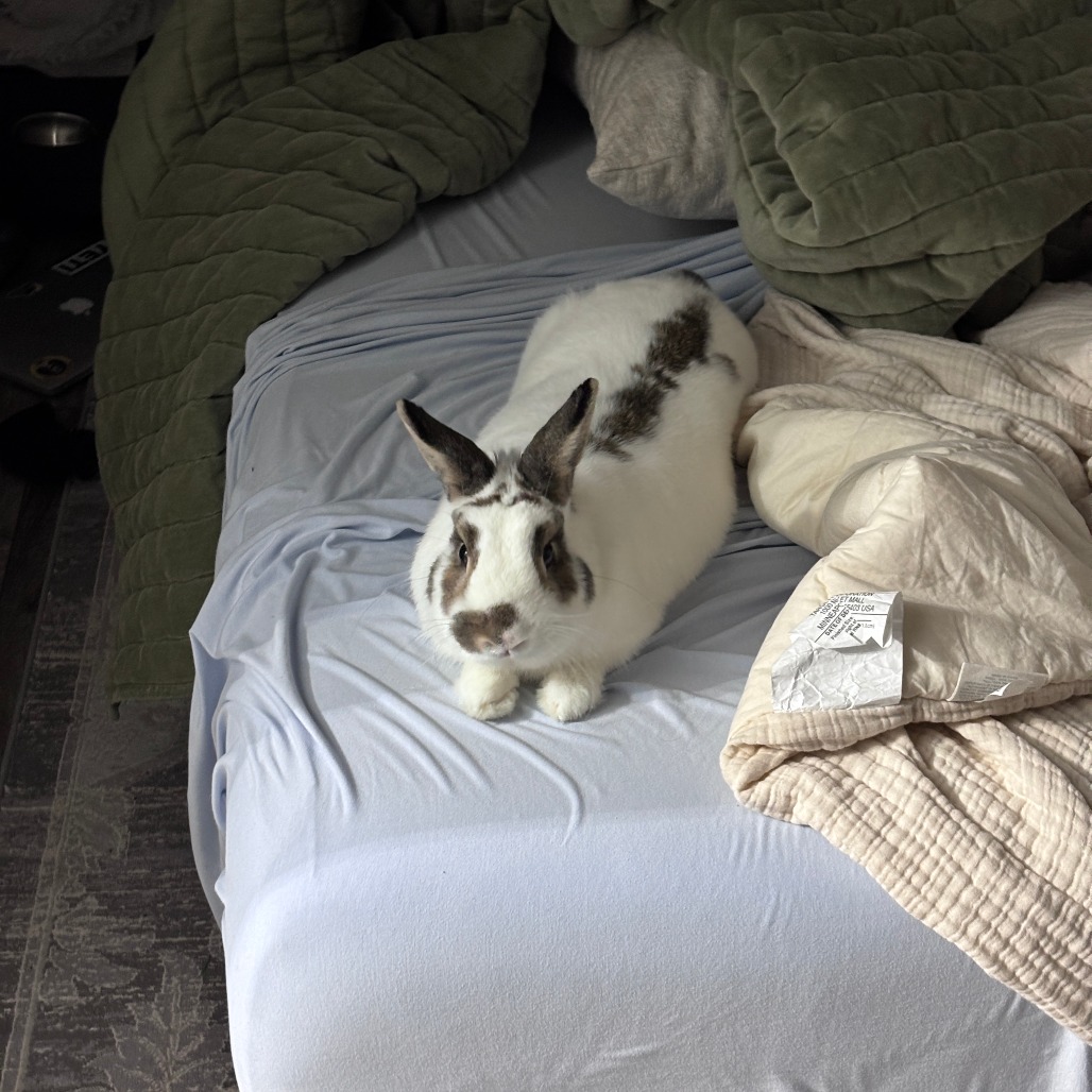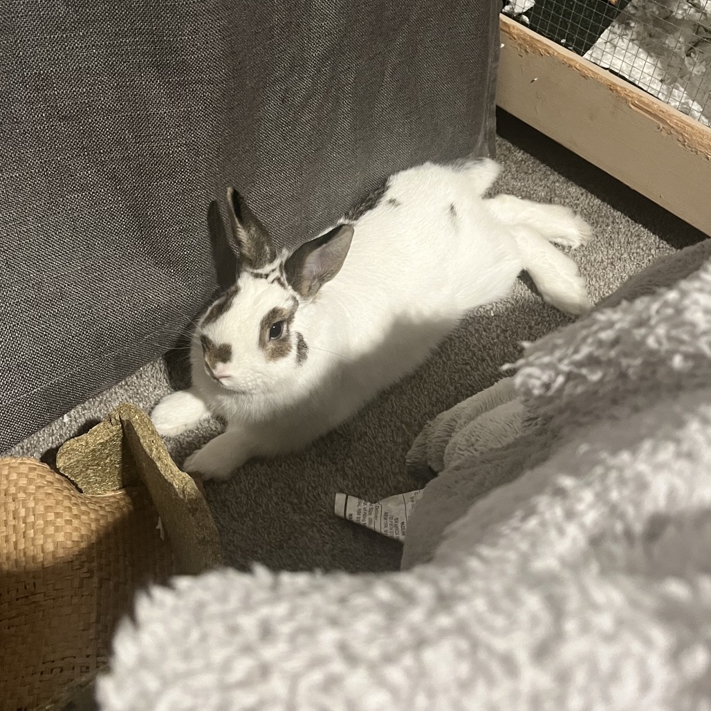Everybody, meet Binx! Binx is a 4-year old, Flemish Giant - Dwarf Hotot mix. Binx does great around children and most people. Binx's current owners call him "sweet & gentle." If you are interested in Binx, please reach out to his owner, Matthew, at (434) 329-8890 or [email protected]. Lynchburg Humane Society is assisting the owners in marketing this pet to help find a new home. The pet is not in the custody of the Lynchburg Humane Society. Lynchburg Humane Society makes no claims or representations regarding the temperament, disposition or health of any animal rehomed by it's owner. All questions and inquires regarding this pet can be directed to the contact information in this pet's bio.