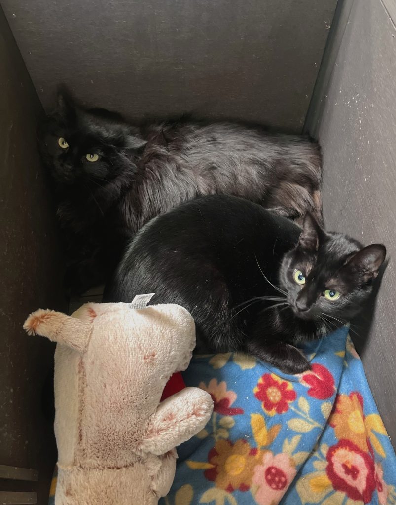 Meet handsome brothers, Raven and Teddy! We’ve been lucky enough to have really low cat numbers recently which gives us room to transfer in from other shelters who may be struggling with their population. A few weeks ago we transferred in Raven and Teddy, and posted them on social media.