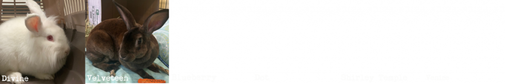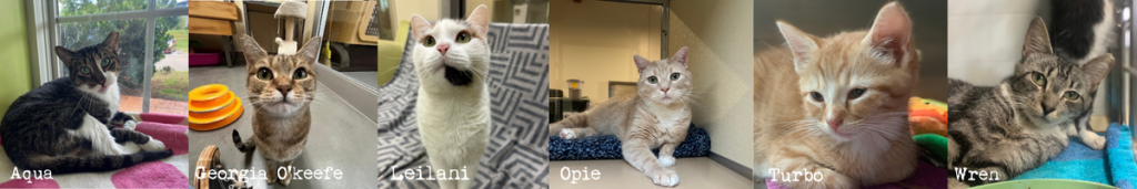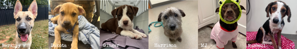 Duke Lawrence, Kona, Morrigan, Odie, Odin, Prissy, Spring, Sunny, Tang, Timmy, Umber, Uncle Buck, Windy, Yoshi.