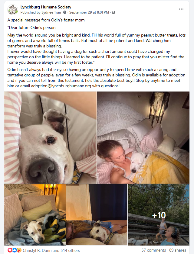 Thank you so much to his adopters for picking Odin to love. And a special thanks to Odin’s foster for being the reason he found a home!! We hope more of our dogs get to experience something as special as this