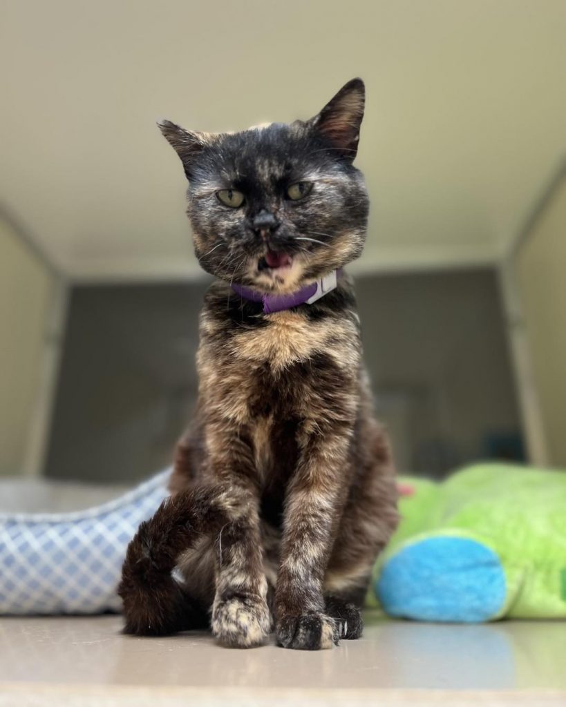 Suki is a special lady with an adorable, smooshed face, a raspy meow, and no teeth! Yep, you heard that right! As you can see, she’s perfectly fine without teeth, and looks down on others who need them to chew.