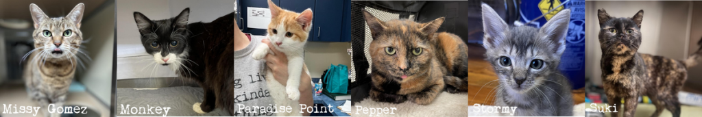 Beltza, Missy Gomez, Monkey, Paradise Point, Pepper, Piggy, Stormy, Suki, Taylor, Thunder, Tiffany, and Wafer