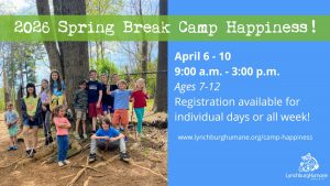 Spring Break Camp is back! You can drop your kids off for a day or the entire week! This animal camp for kids is a good time full of special guests (the human kind & animal kind), lessons on pet care, games, crafts, snacks, & more! Each full-week camper will also receive an LHS t-shirt!