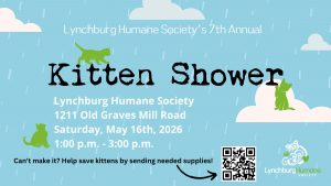 Our 7th Annual Kitten Shower is Saturday, May 16th! Join us as we celebrate our foster community, soak up the joy kittens bring us all, and learn how you can help kittens too! Participate in crafts, trivia, Q&A, demonstrations and more!