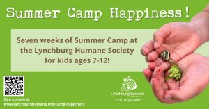 The Center for Pets is offering 7 weeks of summer camps for children ages 7-12 for summer 2026! All camps include guest speakers, special animal guests, crafts, activities, snacks, & time to visit with pets. Full week campers will also receive an LHS T-shirt!