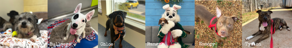 Blossom, Brody, Bubbles, Bullseye, Buttercup, Chloe, Comet, Dixie, Ducky, Dug, Flower, Furby, Gucci, Harpo, Kent, Liberty, Linkin, Lucille, Luna, Margitt, Norris, Penny, Piper, Pumpernickel, Punch, Ranger, Rebel, Sharpie, Snoopy, Taylor, Tyrion.