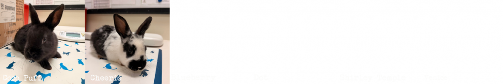 Amtrak, Baby, Butternut Squash, Cadenza, Calico, Chicken Nugget, Cumulus, Dusty, Emmylou, Felt, Fiona, Flo, Fuzzball, Galantis, Graham Cracker, Gumdrop, Gunner, Hammy, Havarti, Honey, Juice, Lovebug, Lunaire, Mallow, Melody, Mipha, Mittens, Norfolk Southern, Peter, Pistachio, Pongo, Pop, Prancer, Raisin, Rockstar, Roly Poly, Roo, Sapphire, Smoke, Snoop, Sophie, Stegosaurus, Stellaluna, Stevie, Suede, Tempest, Thai, The Duke, Thor, Toasted Marshmallow, Toupee, Violet, Wonton, Ziploc.