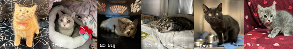 Annie, Arizona, Athos, Baby London, Bestie, Birdo, Brown Sugar, Carrot, Clearwater, Colin Robinson, Cosmic Brownie, Crepe, Duchess of Sussex, Electric Dave, Flay, Flo, Gingerbread Latte, Greyball, Joy, Kaleo, Koi, Lavender, Linda, Mittens, Mr Big, Mr. Handsome, Nandor, Narnia, Oatmeal, Onyx, Parrot, Peeka, Peppermint Mocha, Prince Harry, Rascal, Rec, Rerun, Ritz, Rocky Road, Rollie Pollie, Ryan, S’mores, Salene, Spider, Star, Stink, Tyson, Viper, Wales, William.